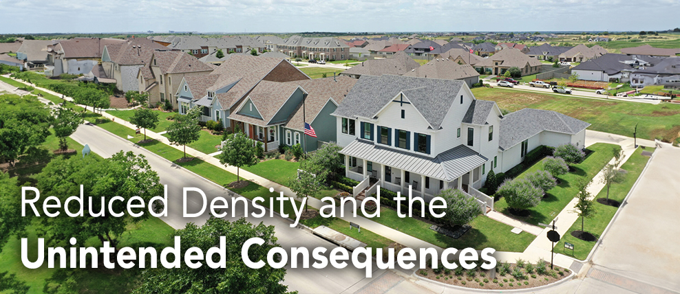A suburban county in the Southeast with a population of just around 100,000 has enjoyed healthy population and economic growth for several years. It is considering implementing a 15,000 SF lot minimum countywide. The simple math shows how a 15,000 SF lot minimum will upend the housing market and stall the community’s economic growth.